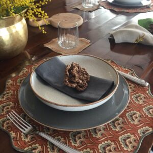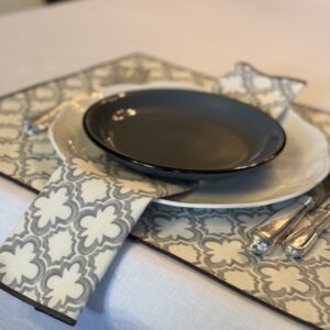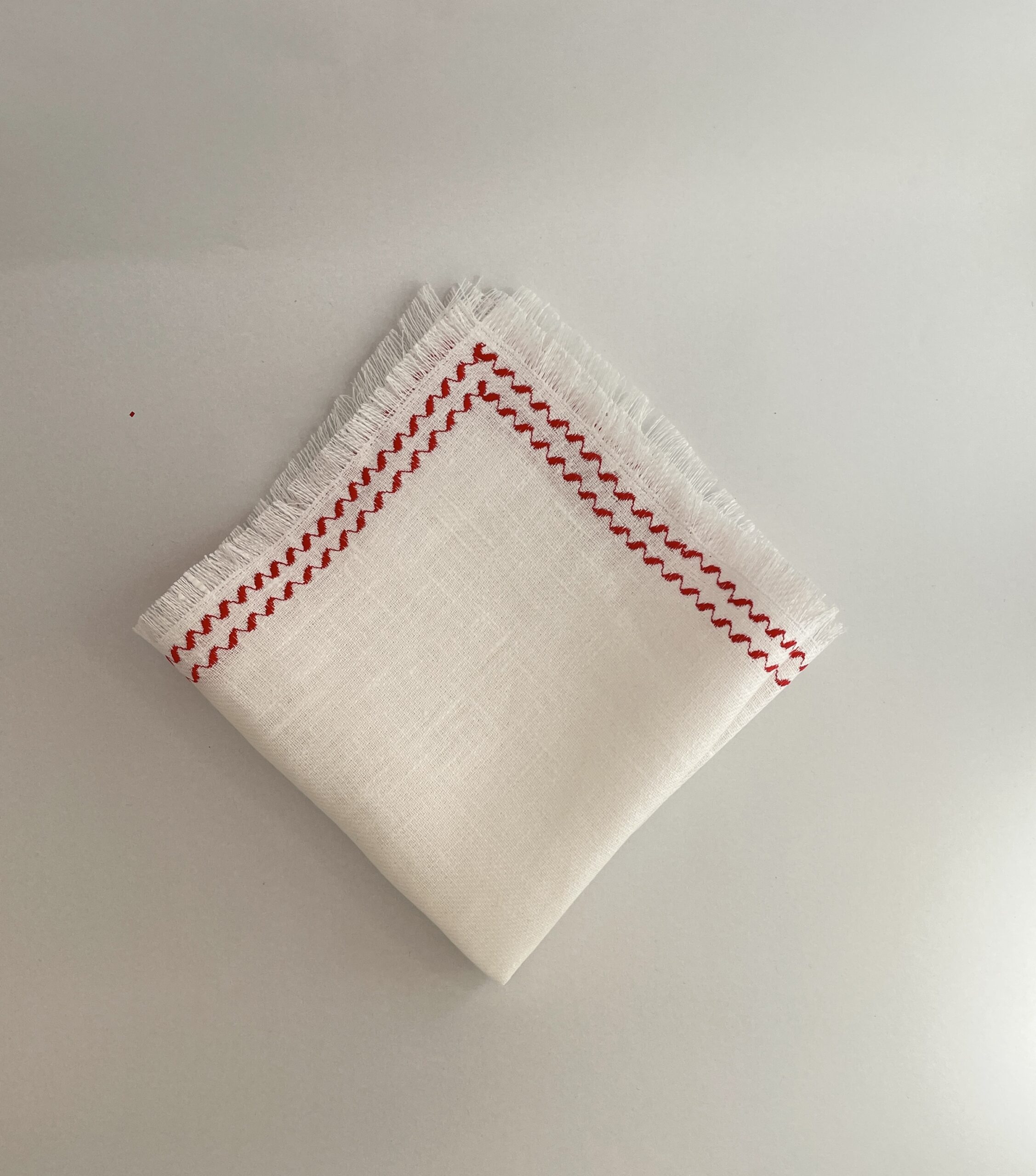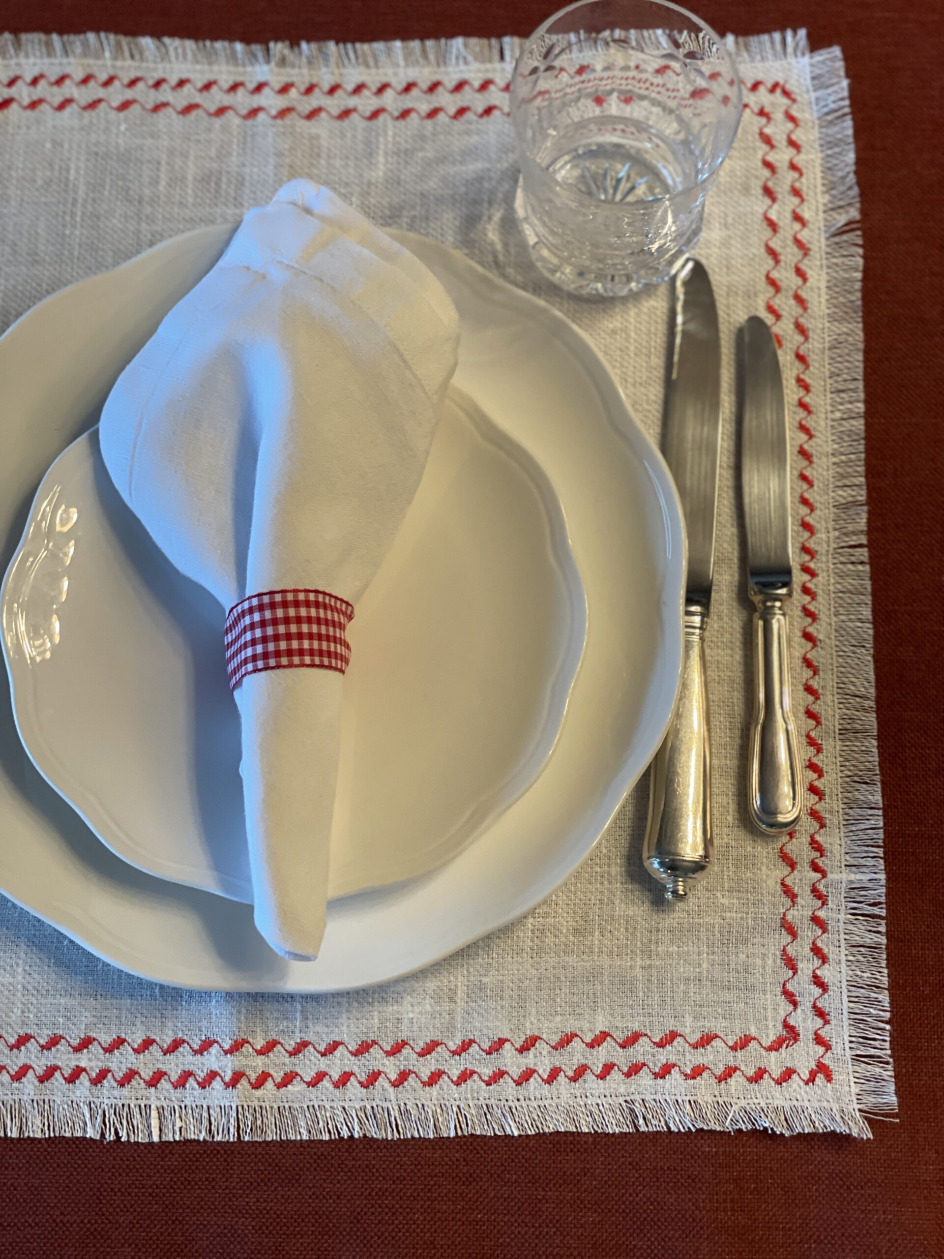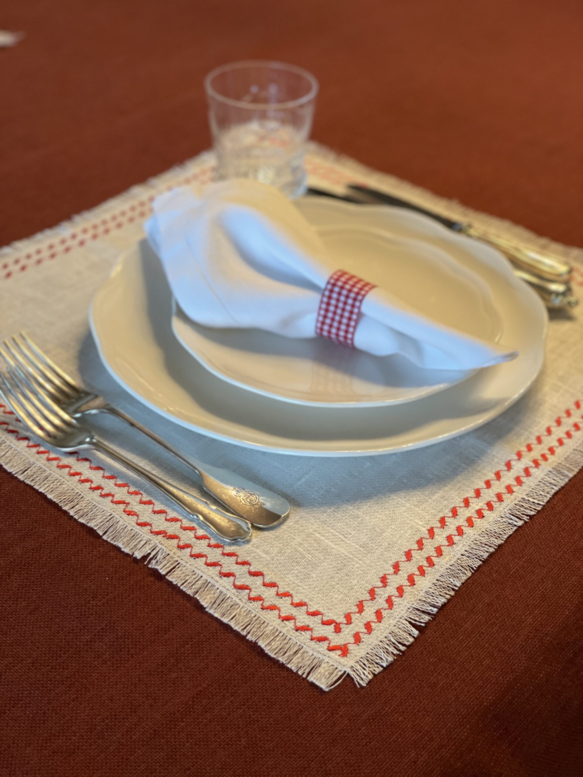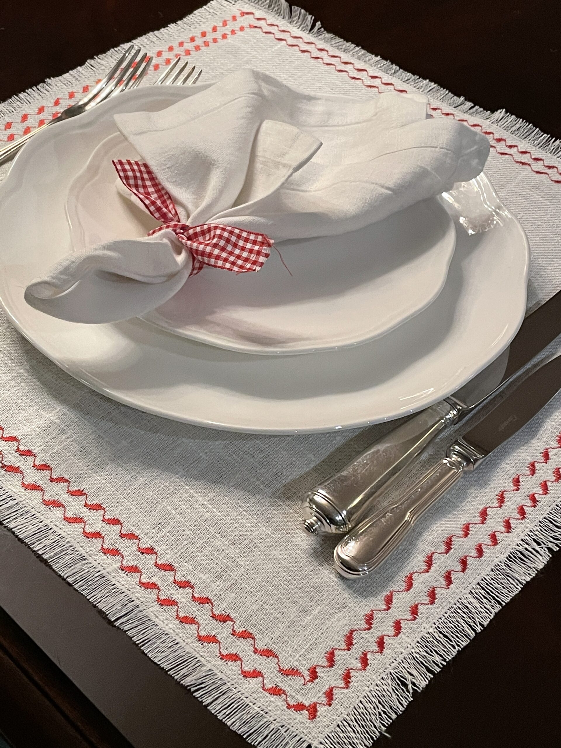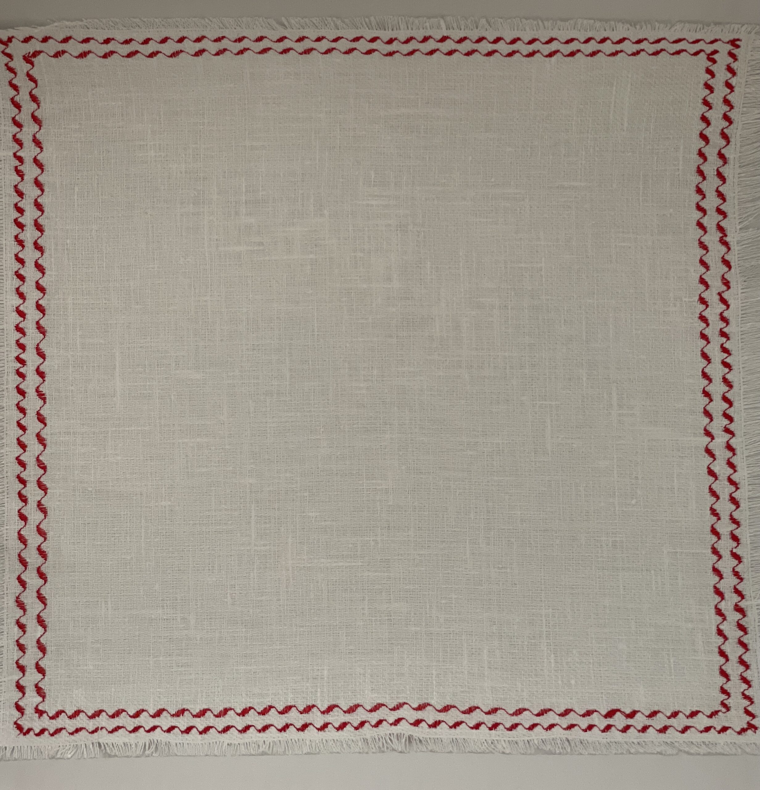 %100 Doğal ham ketenden yapılmış 42 × 42 cm ebatlarında beyaz nakışlı amerikan servisimiz.