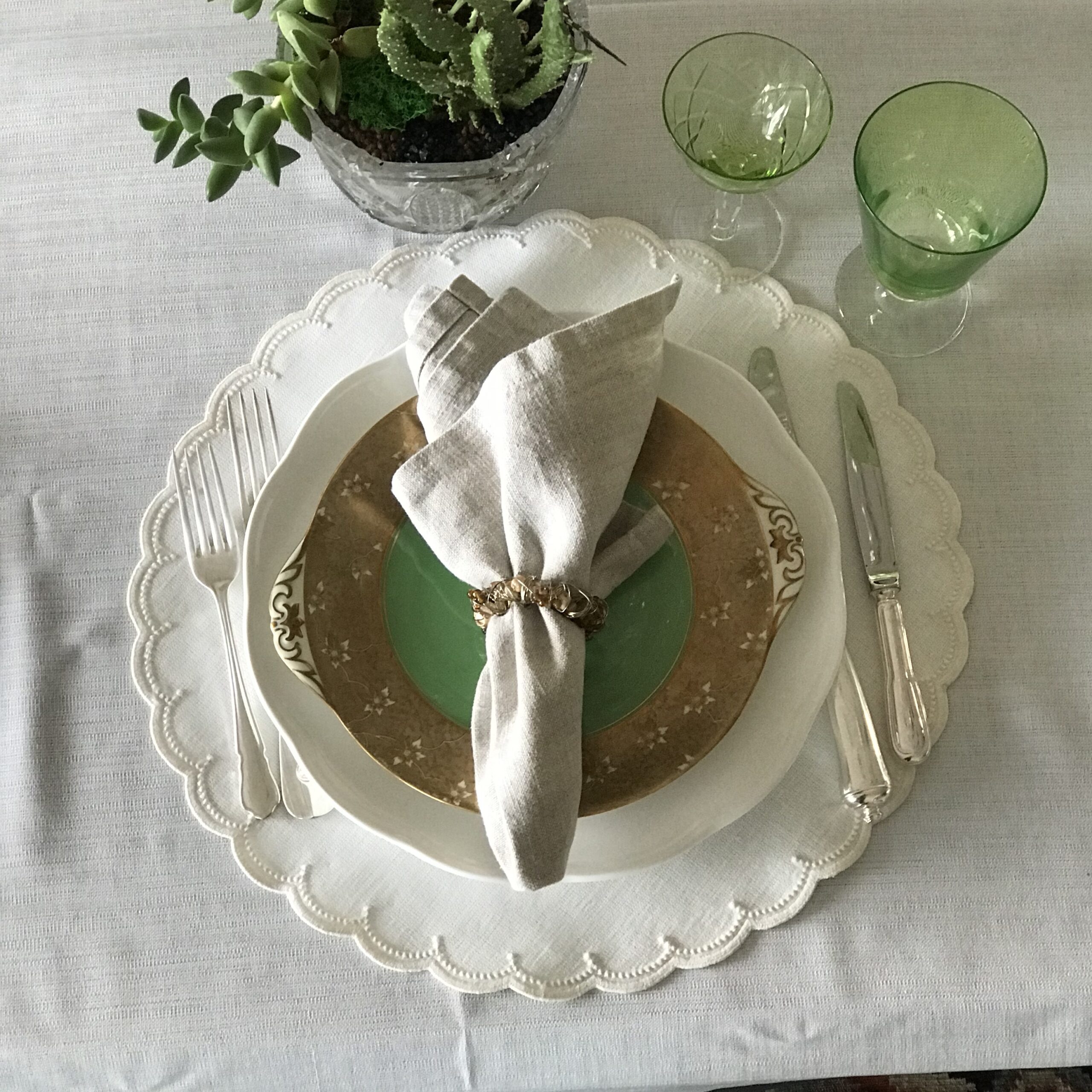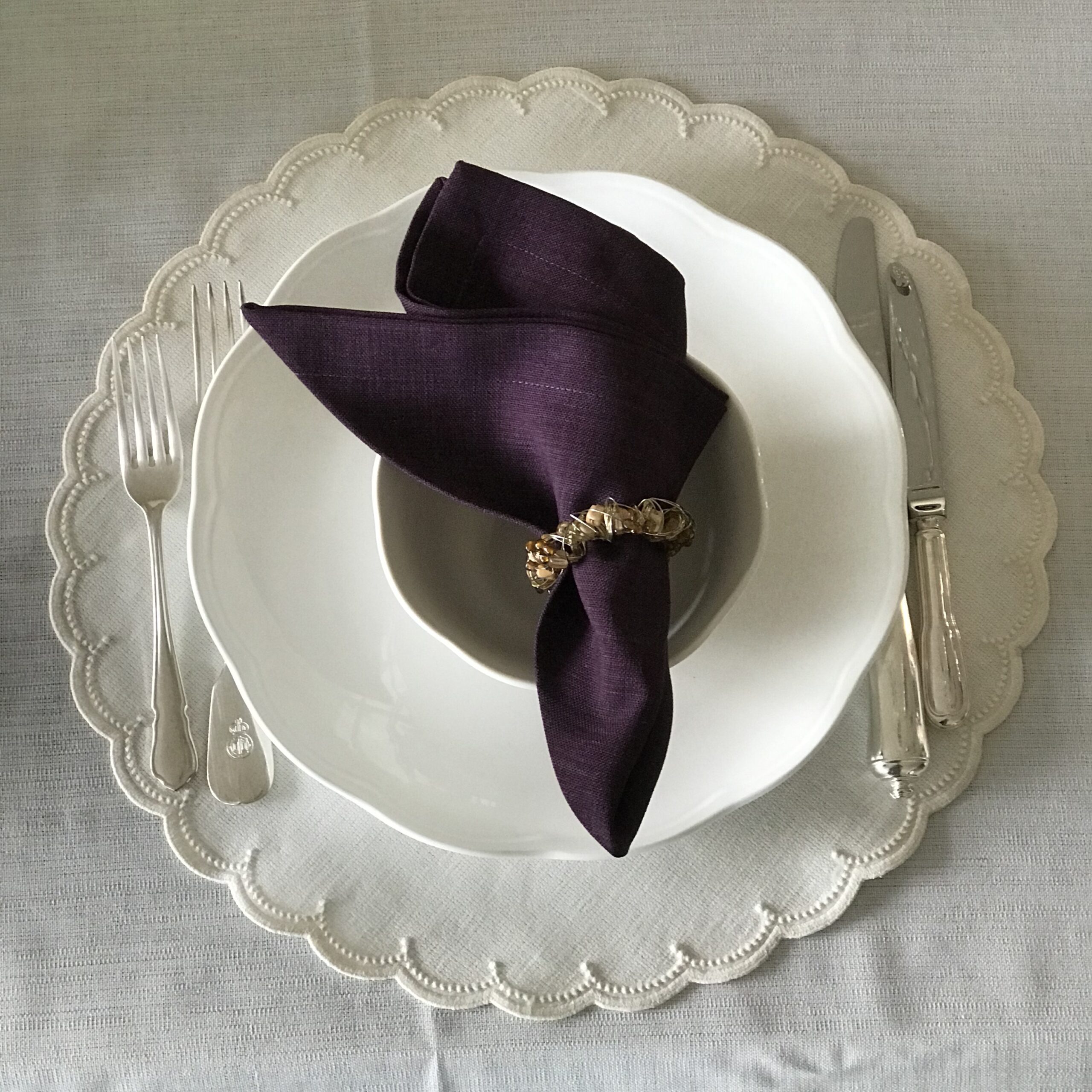Yıkanabilir, %51 keten – %49 pamuk, yuvarlak Amerikan servisi. Çapı 39cm.